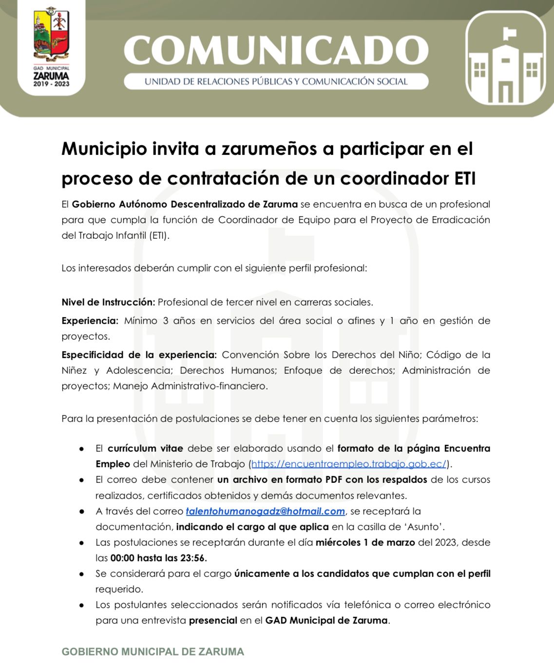 Nuestra misión más importante es ser uno de los Gobiernos locales más eficiente en el país, en brindar obras y servicios para lograr el mejoramiento de la calidad de vida de la colectividad a través de la gestión administrativa apropiada de los recursos, el uso de tecnología de información y el impulso de la actividad turística